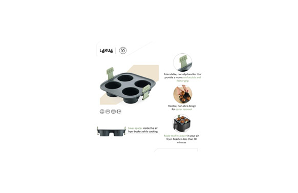 Fabricado en 100. Silicona Platino. Perfecto para freidoras de aire de 5L. Antiadherente. Asas flexibles y antideslizantes. Apto para freidoras de aire, horno, microondas, nevera y lavavajillas, libre de BPA. Usar siempre guantes protectores para evitar quemaduras.